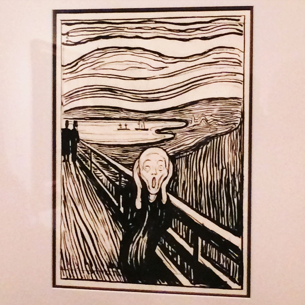 En esta ocasión, se trataba de una exposición sobre Munch, pintor noruego expresionista, cuya obra más famosa es, sin duda, “El Grito” (1893). En esta exposición no se podía disfrutar de esta obra en concreto, pero sí de otras muchas, cuyo hilo conductor son las emociones que reflejan sus obras (amor, deseo, celos, ansiedad,..).